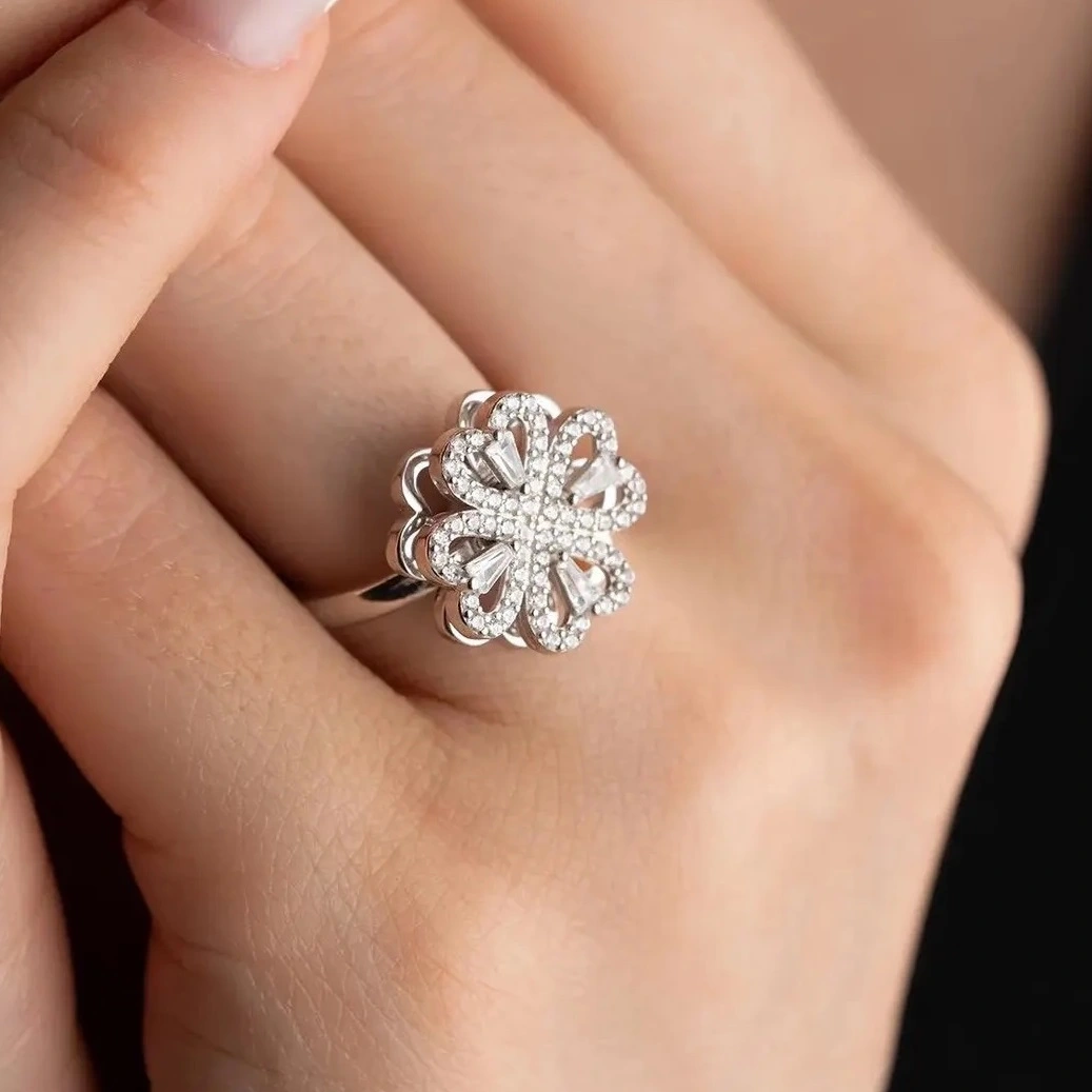 Introducing the Lucky four leaf heart Clover Spinner Rings for Women, a sophisticated and stylish accessory that combines modern design with the timeless symbolism of good fortune. This exquisite ring, adorned with sparkling zircon stones, offers both elegance and a touch of luck, making it a standout piece in any jewelry collection. Designed for those who appreciate fine details and a unique spin on classic jewelry, the Lucky Clover Spinning Ring is perfect for enhancing your style and celebrating life’s special moments.